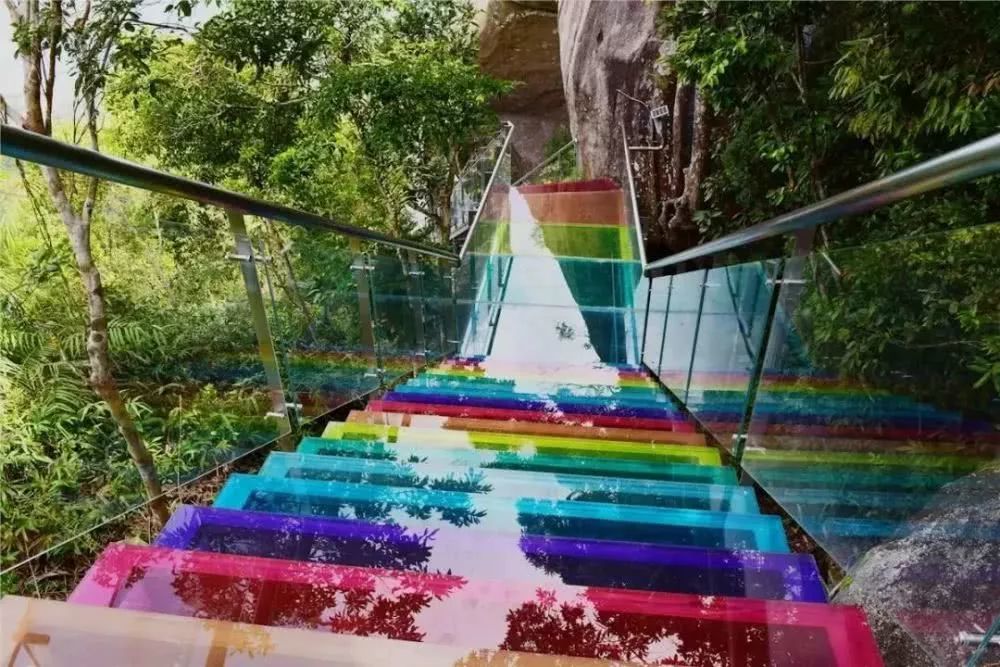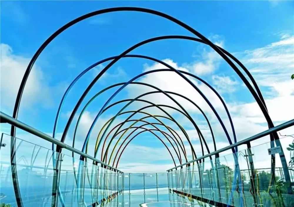 它是全国首条全海景玻璃栈道,栈道包括凌空台、七彩天梯、彩莲望佛台、彩虹之路、山盟海誓及心心相印等景点,惊险刺激之余,游人可360°无死角感受亚龙湾的美景。