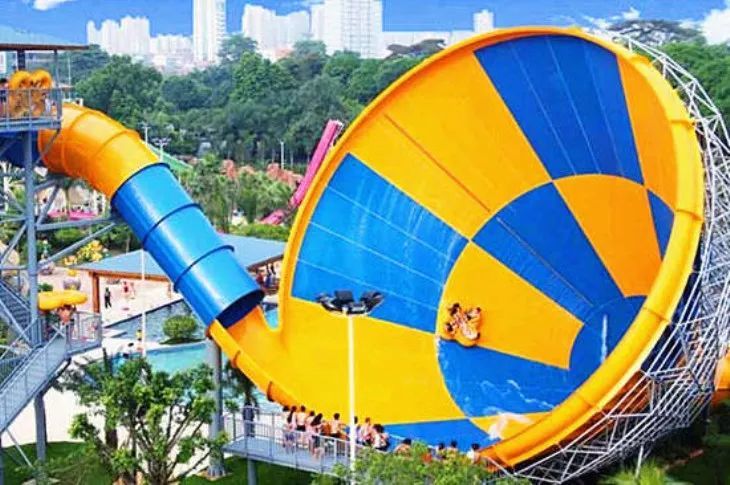 水上乐园的“超级大喇叭”项目非常赞,坐在特别设计的四叶草型浮圈里面滑行,从16米高空滑行到直径约21米的巨大的喇叭型圆锥体里面,像是被龙卷风吸进去的感觉,特别适合喜欢体验新鲜感受的小伙伴们。