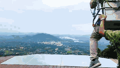 从悬崖边荡出去,视线范围内没有任何阻拦,玩的就是心跳。如果天气晴好,远处的海棠湾美景仿佛触手可及