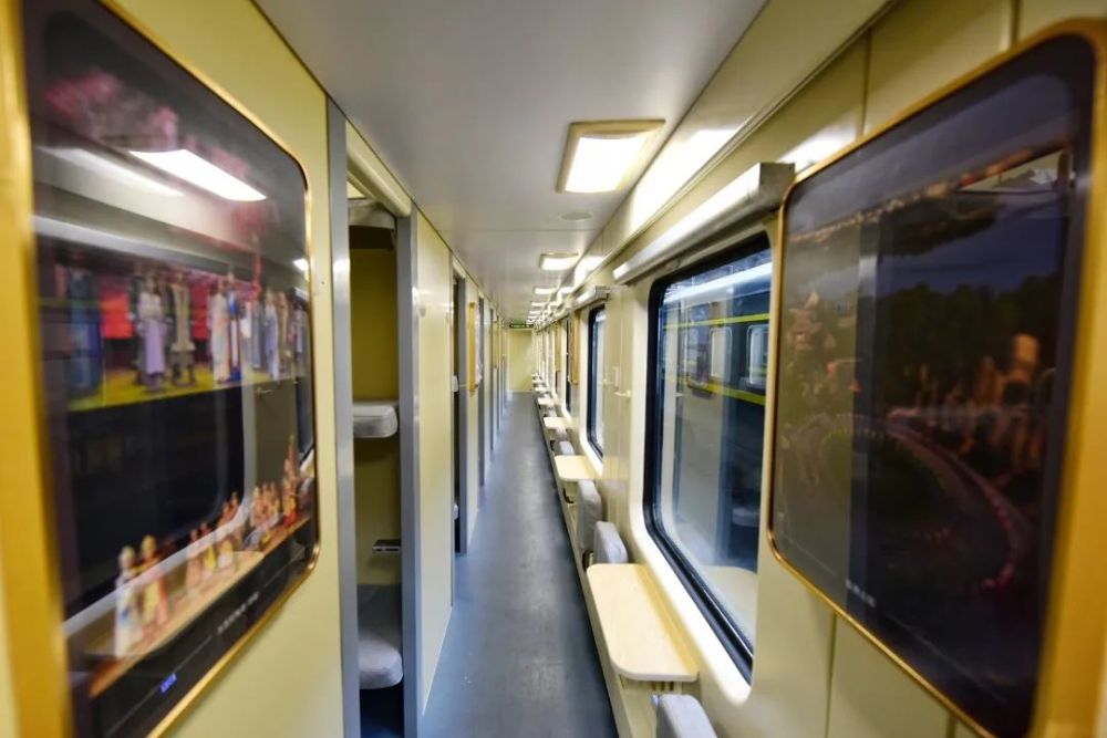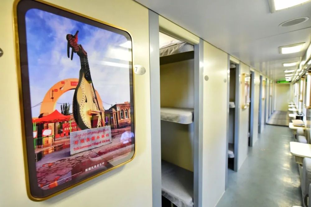 新疆铁路部门围绕文化润疆工程的开展,按照“一车一地”“一车一景”,把喀什所辖12个县级行政区或景区景点的城市特色和人文景观,通过装饰等方式融入车厢、包房中,在桌巾、靠巾、抱枕等细节上体现喀什文旅特色,让旅客从上车开始就能感受到浓郁的文化氛围。