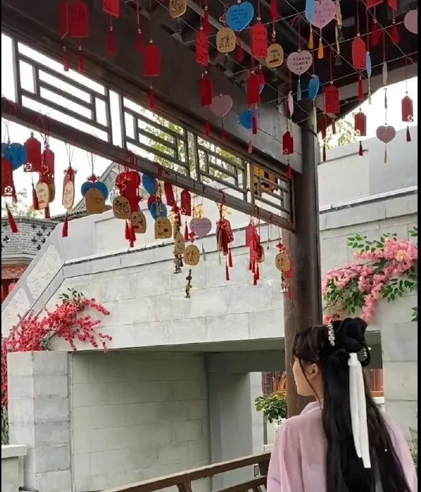 将自己的祈福愿望挂在挂在许愿长廊中