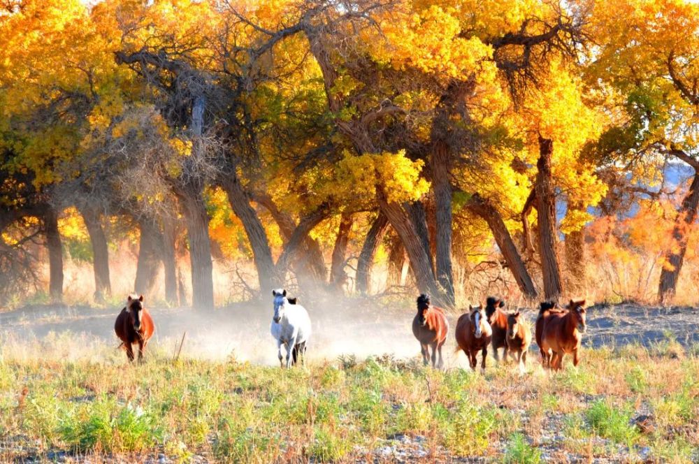 线路:阿拉善左旗腾格里沙漠天鹅湖生态旅游区——阿拉善盟胡杨林旅游区——额济纳黑城·弱水胡杨风景区——额济纳旗居延海景区——额济纳旗东风航天城旅游区