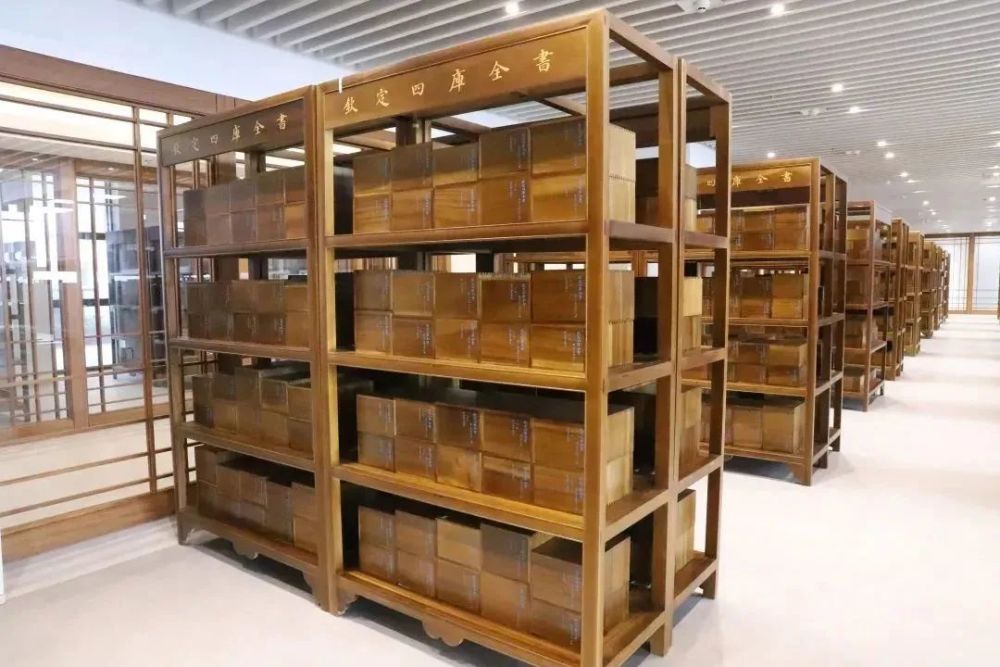 在三楼的文津阁《四库全书》展,可以与中国古代最大的一部官修丛书相遇,领略“千古巨制、文化渊薮”的魅力。这里陈列着北方四阁中最后完成的一部《四库全书》,这部全书补正了之前版本中的讹误、遗漏,其中一些文献资料更是海内孤本。全套图书共计3.6万余册,出版工程量浩大,整套书用6000余个木盒盛装,可谓浩繁卷帙,书香隽永。