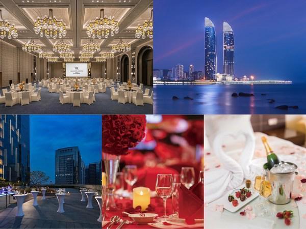 位于厦门思明区的厦门华尔道夫酒店是犹如一栋气势恢宏的花园宅邸,酒店包括面积达966平方米层高8米的无柱奢华宴会厅,配备嵌入式高流明度投影仪和LED屏幕,在璀璨的水晶枝形吊灯的装点下让宴会厅熠熠发光,南洋风情与优雅精致为新人铸就了别样难忘婚礼时光。全自然采光的宴会前厅是新人接待亲朋好友贵宾的理想场所,钟情于户外环境的宾客可选择位于酒店五楼的露台花园,这片面积达2,600平方米的场地包括游泳池、水景观景台和婚礼草坪,清新灵动的环境为婚礼的无限创意提供舞台。