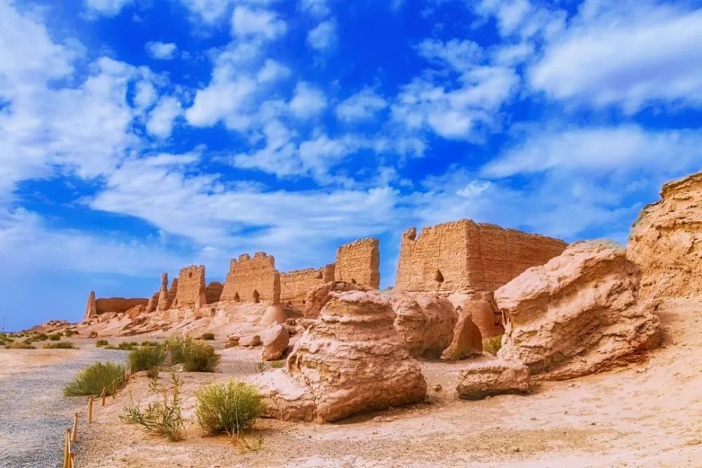一座被历代文人墨客吟诵的古城,这里残存部分房屋、农田、渠道等遗址,当大风过后,这些遗址清晰可见。不由得让人想起那句“西出阳关无故人”。
