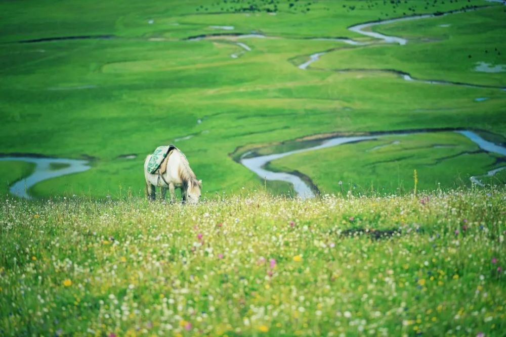 河流蜿蜒在草原之上唯美异常;能够俯瞰湿地景色。【旅行建议】提前带好风马,景区观景台抛洒风马感觉佳;沿途可在娘玛寺看到世界最大的转经筒。