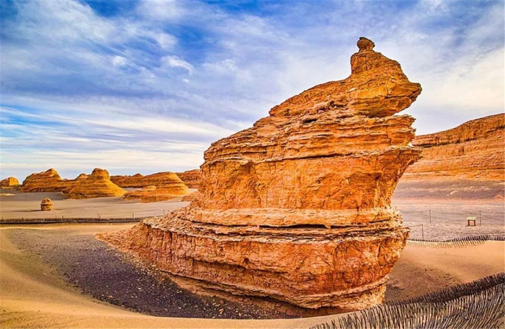 雅丹魔鬼城犹如一座中世纪的古城。一座座土黄色的古城堡耸立在青灰色的戈壁之上,衬以蓝天白云,显得分外妖娆。