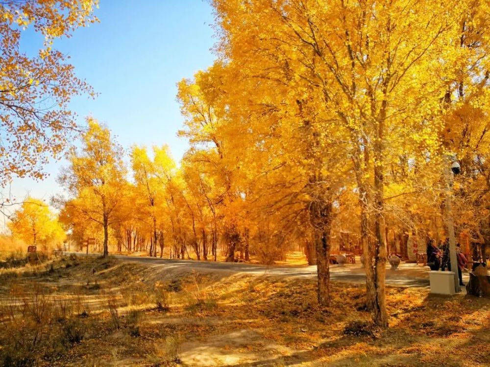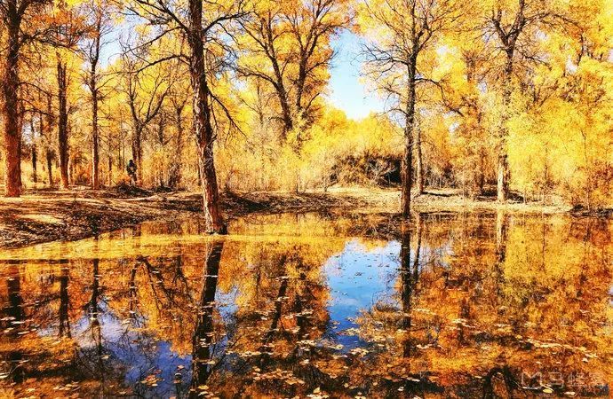 每年金秋时节,正是酒泉金塔胡杨林的变黄季节,第一场秋霜过去。落叶在风中翩翩起舞,极具冲击力的色彩,是用任何语言文字都形容不了的~