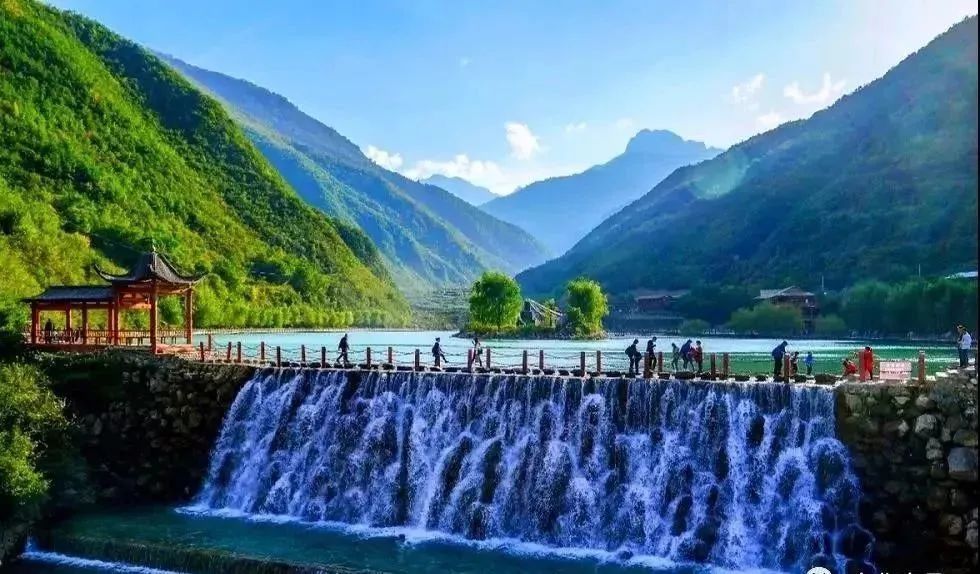 位于文县城北64公里的洋汤河源头,是一个翠绿色的人间秘境,这里碧波万顷,如揩新绿,微风鼓浪,势若海潮,岩树倒影,隐如龙跃,碧水蓝天美如画,被誉为中国四大天池之一.