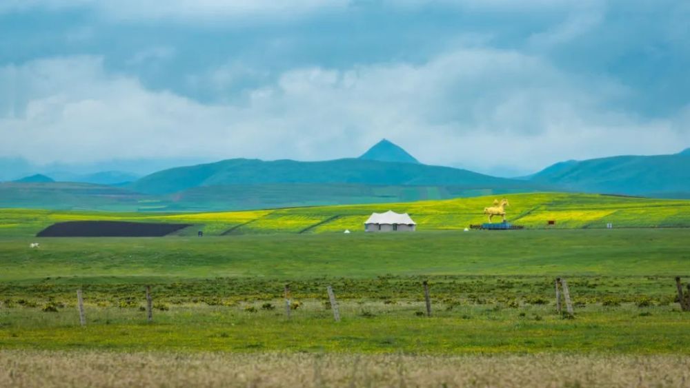 扁都口是古代丝绸之路的南路,夏季的时候漫山遍野都是油菜花,处处洋溢着清新的花香。金黄色的油菜花田、散落的白色毡房,蓝天白云下,呈现一幅生机盎然、幸福安乐的美好图卷。