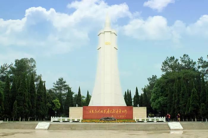 百色起义烈士纪念碑位于广西百色地区城东后龙山,于1984年12月11日落成,由邓小平同志提书,碑高23.8米,前临右江、俯视鹅城,后拥群山、青松翠柏相随,是百色地区正式的标志。