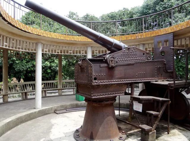 炮台系环形城堡式建筑,古炮居中,借助城堡平台东西南北的4条小天桥相通。城堡高4.8米,分上下两层,上有天台栏墙,下设南此两门和隔室。