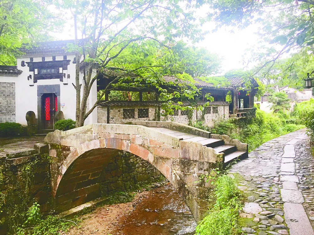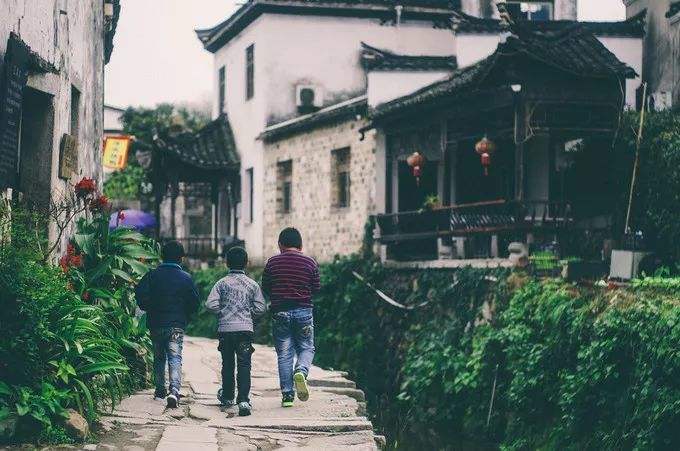 古村尽头是青山和田野,铺满了藤蔓的石桥、临水濯衣的妇人、路旁写生的学生构筑了一幅别致的水乡画卷。
