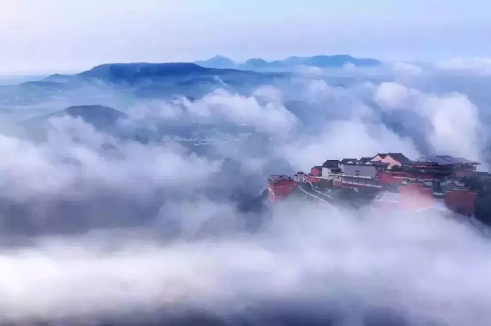 茅山顶的九霄万福宫,依山而建,宏伟壮观,观内主要殿堂有灵官殿、藏经楼、太元殿、三圣殿、飞升台等,为茅山“三宫五观”之首。