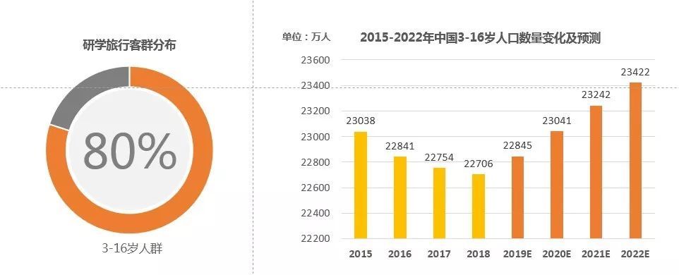 就像传统的消费方式已经不能满足人们不断升级的消费需求一样,传统的教育方式也已经不能满足学生综合素质全面发展的需求。体验式教育理念和旅游业的跨界融合,使研学旅行成为市场热点。目前研学旅行的客群里,超过百分之八十属于3-16岁人群。未来几年,不算增长的适龄青少年人口将为研学旅行的发展带来巨大的市场需求。
