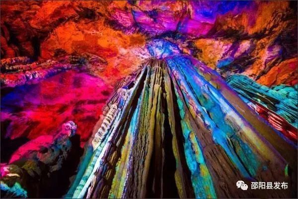 据了解,济公岩溶洞位于邵阳县河伯岭风景区,溶洞面积约5000平方米,洞高10到15米不等,溶洞有大小石灰岩溶洞10余个,洞内53堆如塔如堡的红黄白三色钟乳石堆积成墙和屏风,胜景格外雄奇。洞内有四处石瀑石幔,从15米高的洞顶直达洞底,令人叹为观止。