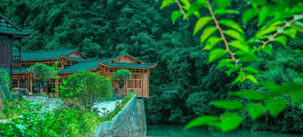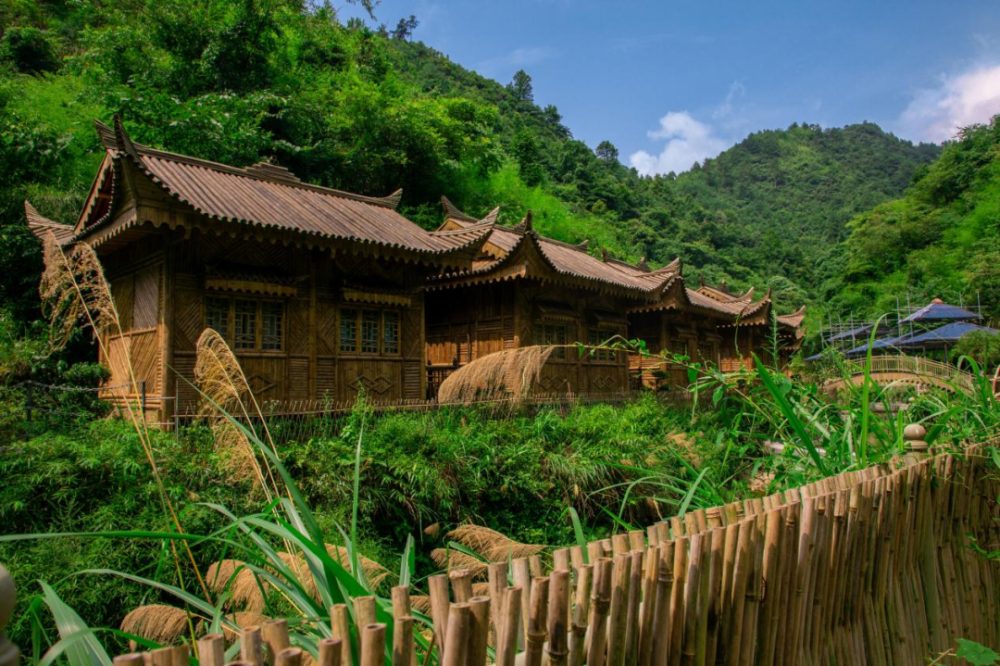 从游客服务站步行约1000米可到达此地,静心居依溪而建,整体材质采用本地杉木和3周年以上的楠竹组建而成,周围群山环绕,深林覆盖率达80%,全域年均负氧离子浓度2900个/cm3,冬暖夏凉,山体地质勘察通过,全年适宜居住。