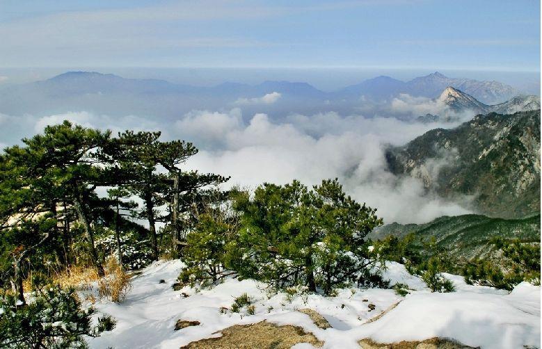 每年11月下旬至次年3月中旬为下雪期,12月至次年2月为降雪高峰期。冬季的冰凌、雪霁、雾凇、雪景等冬季特有的气象景观,十分壮观,而云海、佛光、落日、朝阳等美景更是尽收眼底,吸引了全国大批游客前来观光欣赏。