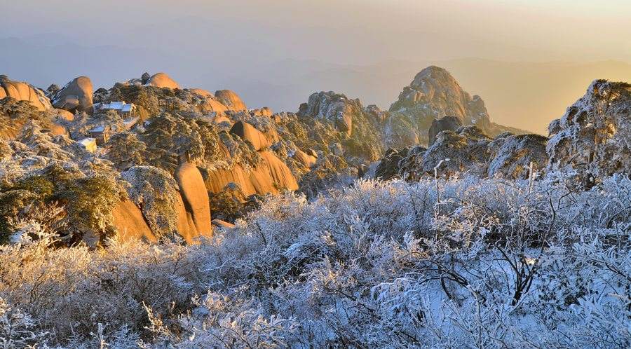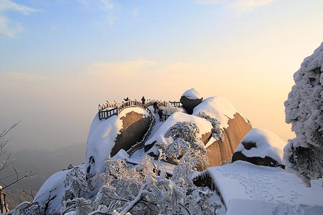 看雪景最佳地点有北海、西海、天海、玉屏楼、松谷、云谷,冬日看云海最佳地点玉屏楼观前海、清凉台观后海、白鹅岭观东海、排云亭看西海、光明顶看天海。黄山雾凇有62天,每逢冬季就出现雾凇奇观。