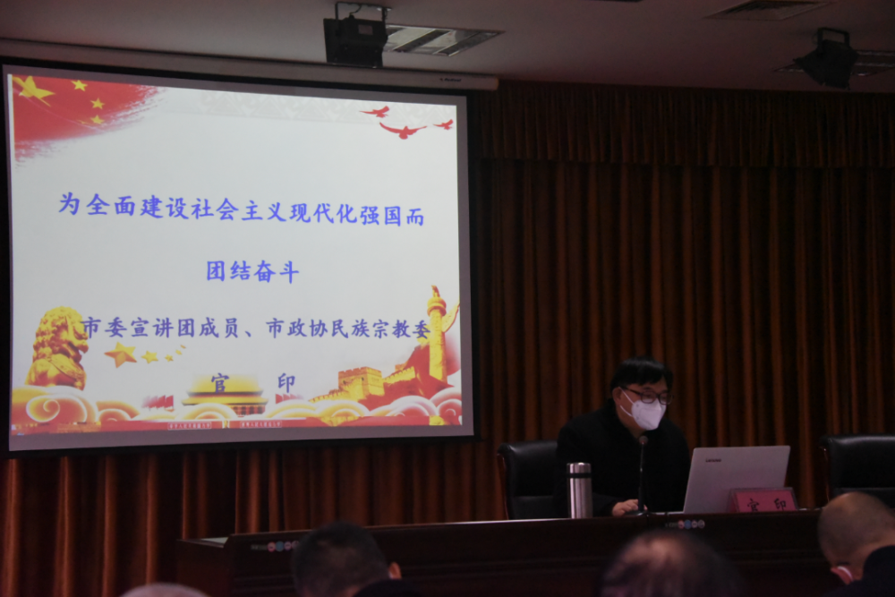会上,官印主任以“为全面建设社会主义现代化强国而团结奋斗”为主题,从党的二十大会议主题及主要成果、过去5年的工作和新时代10年的伟大变革、马克思主义中国化时代化、中国式现代化等七个部分对党的二十大精神作了系统宣讲和深入阐释。报告既有理论阐释、又有事例剖析,既有政治高度、又有实践深度,使广大党员干部开阔了眼界,提高了认识,启发了思路。