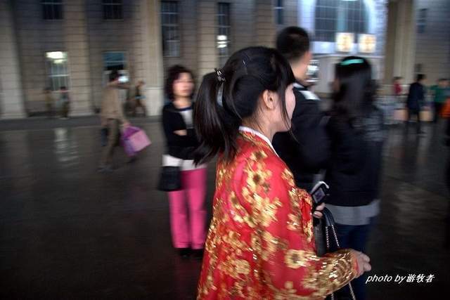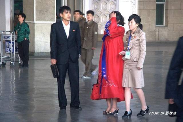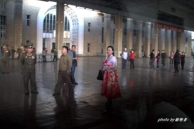 从丹东开来的火车进站,站台上接站的除了几位朝鲜人民军的军官,还有一些身穿民族服装或者职业装的美女在焦急地等待火车的到站。
