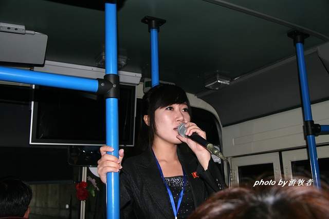 在从板门店返回平壤的路上,为了打发路上的时间,小金给大家演唱了几首中国和朝鲜的歌曲,歌曲演唱得字正腔圆,如果不说是朝鲜的导游要演唱,听起来和大家在国内演唱的歌曲没有多少差别。大家起哄让小李和小金卡拉OK男女声对唱,他俩用中文为大家演唱了一首《月亮代表我的心》,博得大家热烈的掌声。