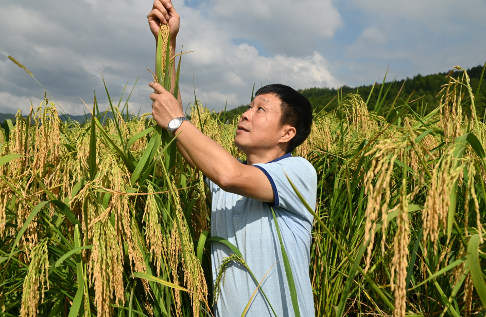 游立寿在水北镇大乾村查看巨型稻种植生长情况