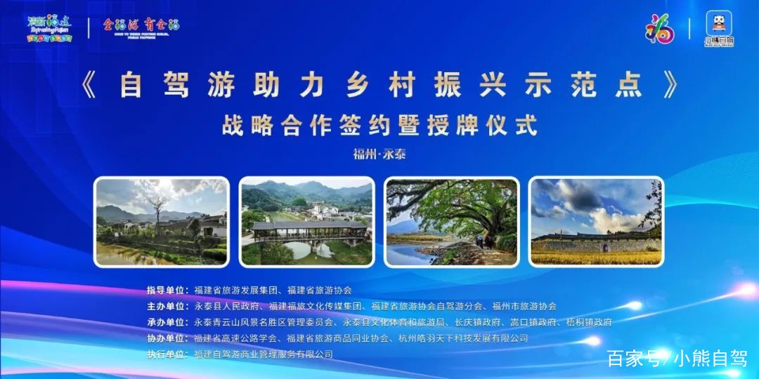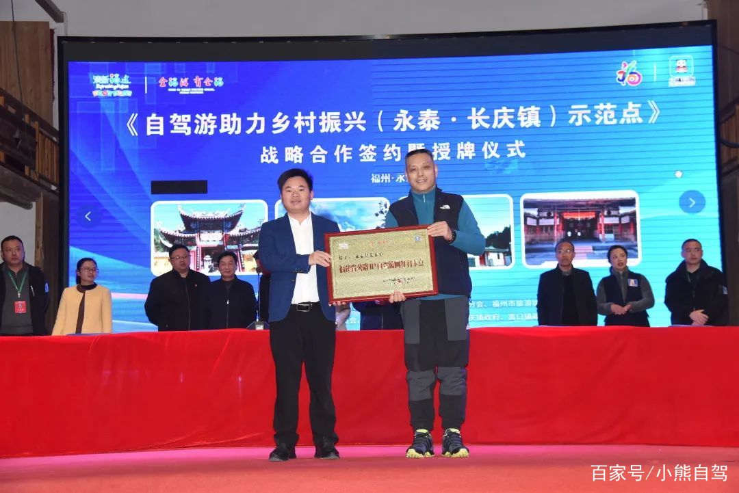 福建省旅游协会自驾游分会分别向永泰的梧桐镇、嵩口镇、长庆镇授予《福建省美丽乡村自驾游示范点》、《福建省公路IP自驾游网红打卡点》牌匾。进一步激发永泰乡镇旅游市场活力,引爆自驾旅游市场,真正把资源优势转化为产业优势和市场优势。授牌