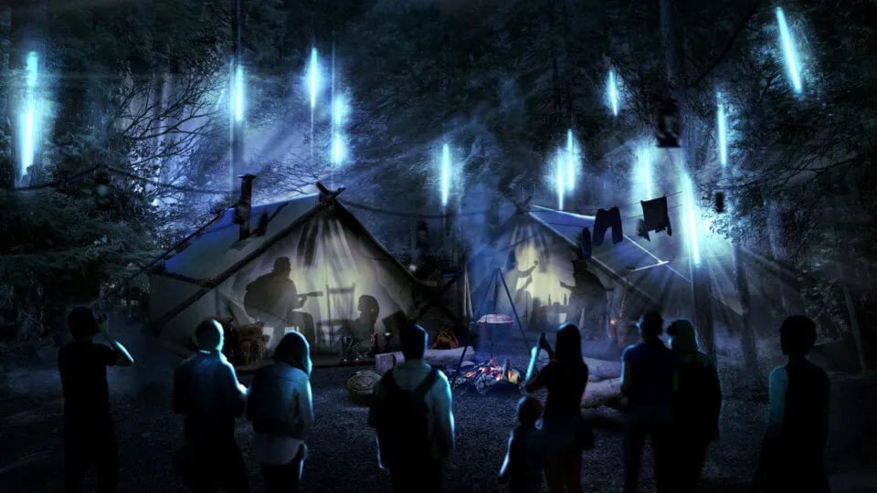 而真正将惠斯勒不可思议的自然之美通过艺术与科技的手段呈现在世间的,当属2018年夏季Vallea Lumina 森林多媒体光影夜游,它毫无疑义地成为了全球夜游行业的典范。在1.5km的夜间漫步中,游客遍览土著的篝火、露营者的帐篷、北美灰狼的嗥叫、棕熊的出没、潺潺溪流之中洄游的大马哈鱼跃出水面、萤火虫漫布林间……这宛如仙境一般的旅程,带给游客视听感官和心灵的无以伦比的沉浸式体验。