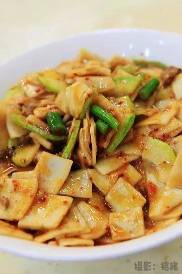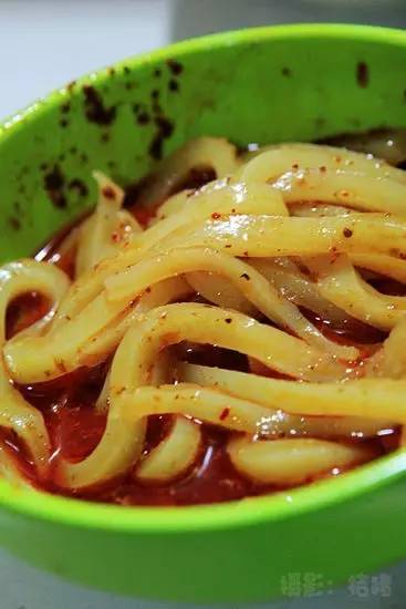 面皮配着西红柿、青椒、肉片炒,色泽够诱人,口感也很好。浇点红油辣子,热乎乎吃上一碗,知足。