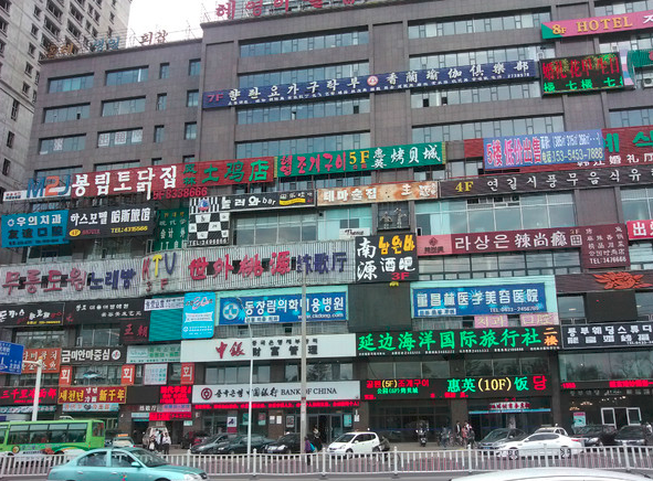 一整面都是韩语中文的双语标语,