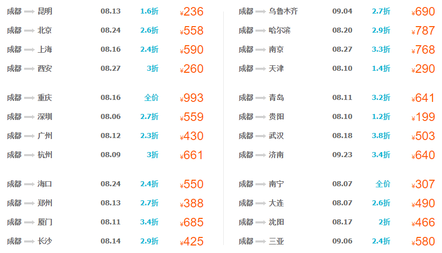 今日特价机票