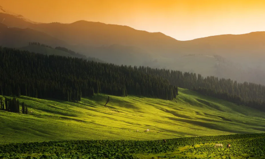“喀拉峻”是哈萨克语,意思是“山脊上的莽原”。喀拉峻大草原是哈萨克牧民的夏牧场,生长104种天然优质牧草,属典型的“高山五花天然草甸”草原,海拔在1305-3957米之间,被联合国粮农组织-誉为“世界上少有的高山天然优质大草原”,每年春夏季节上百种天然牧草在不同时间依次绽放色彩、形态、香气各异的花朵,被绿茵绒绒的草原衬托的更加绚丽多彩。