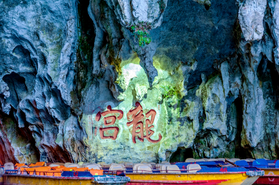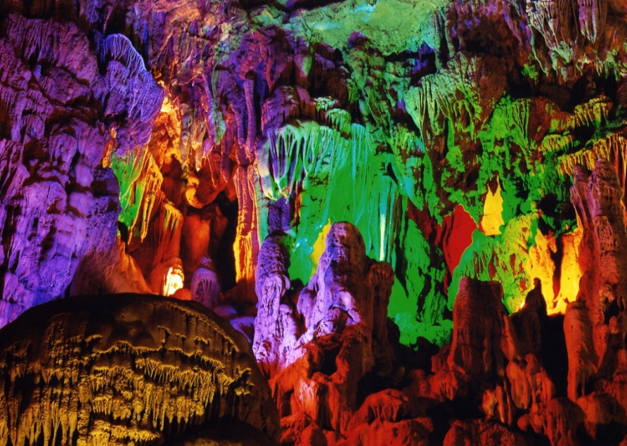 里面的奇观真的是太震撼了,这真是大自然给予贵州人民的礼物, 一进龙宫的出口,光线真的刚刚好,再遇上哗啦啦的水产生的水雾,就会看到彩虹,完全让人沉浸在自然景观与五彩灯光完美配合的光景下,真的太美了。