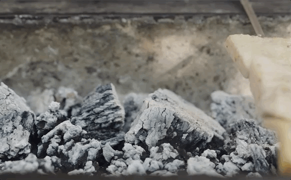 在洗干净的脾脏里塞满了以羊尾油为首的肉馅,用钎子缝合,然后小火慢烤,内外焦黑毫无卖相时,便烤好了。