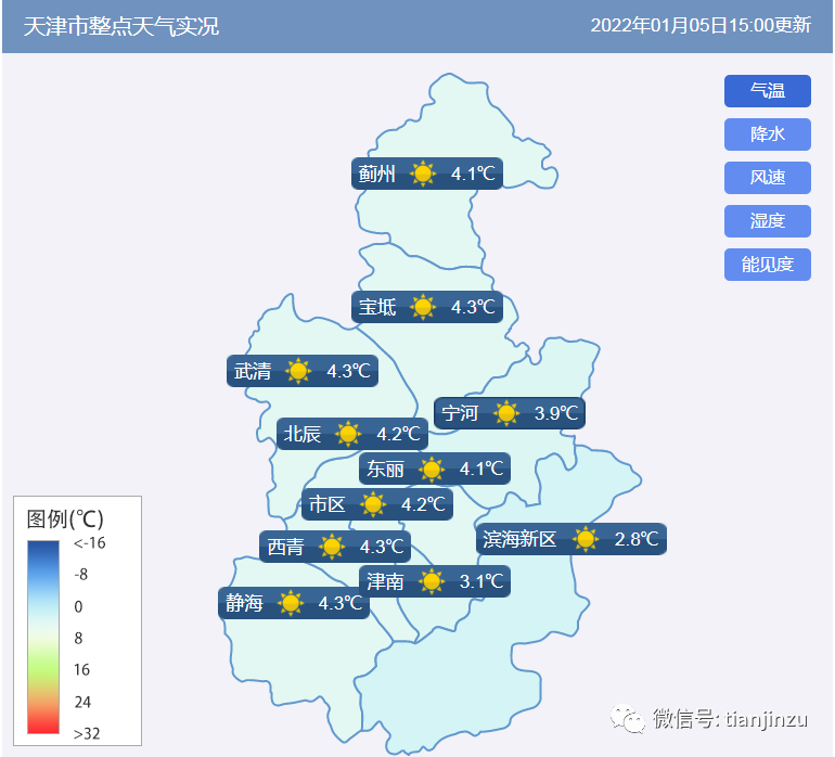 昨天(1月5日)进入小寒节气,常年来看,此时我国大部地区将进入一年中最冷的时段。但近日津城处于冷空气间歇期,天气系统较为稳定,全市气温并不低,昨天下午15点气温基本均在4度左右。