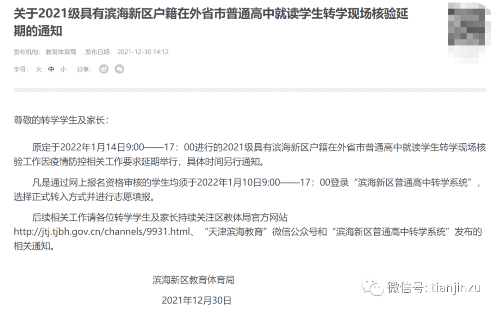 天津东丽区、西青区、宝坻区教育局发布推迟转学考试提醒,原定于1月份的转学考试推迟到春节后进行!