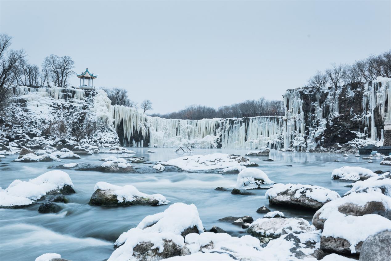 中国规模最大的冰瀑布—牡丹江镜泊湖。