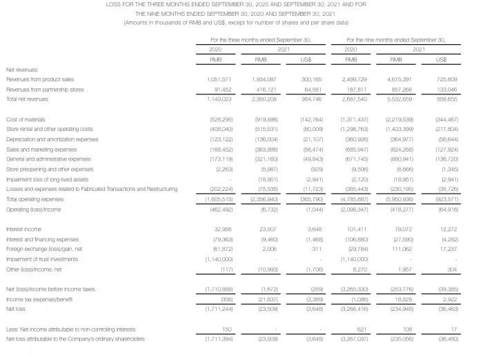 12月9日,其发布的三季报显示,当期,瑞幸营收人民币 23.502 亿元,较上年同期增长 105.6% ;净亏损2350.9万元,去年同期为亏损11.11亿元。