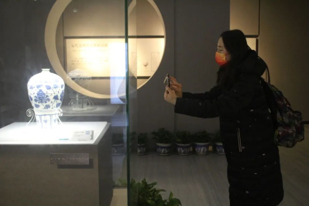 游客拍摄中国景德镇陶瓷博物馆内的镇馆之宝“元青花”梅瓶