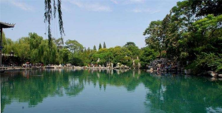 沿着护城河一路往西,穿过泉城广场,来到了趵突泉公园。听说趵突泉是天下第一泉,今日一见,果然名不虚传。看那三个泉眼真大啊,水“咕嘟咕嘟”不停地往上冒,水柱向上跳跃着,可总也跳不出水面,似乎下面有什么牵着似的。
