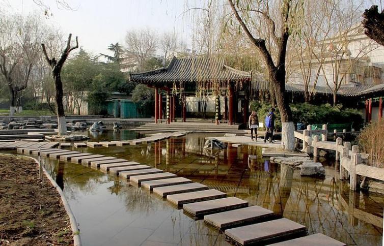 黑虎泉群紧紧依偎着护城河。这里有琵琶泉、玛瑙泉、五莲泉……最有名的当然是黑虎泉啦。只见三个黑色的虎头从石壁中探出来,怒目圆睁,大嘴张开,三注湍急的水流喷涌而出,那声音如虎啸狮吼,声势特别大。走着走着,一条小溪流拦住了我们的去路,大人们都踩着石头过,小孩子可不放过这么好的玩水机会,有的拿水枪射,有的用瓶子灌,我的水枪不知怎么不好用了,有什么关系呢?赶紧脱掉袜子、赤着脚踩水玩。哇,这水冰冰凉凉,瞬间就扫去了小编一路的疲乏。