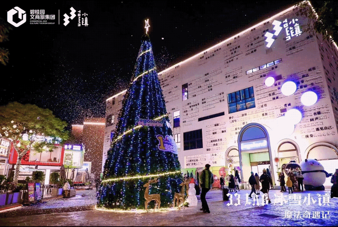 而在圣诞、元旦期间,广东33小镇以33-LAB冰雪小镇·魔法奇遇记为主题打造东莞首个室外冰雪小镇,期间展开圣诞亮灯仪式、希望宝藏慈善晚会、33-LAB魔法主题市集以及33-LAB&once again音乐厂牌的跨年演唱会等活动,为东莞年轻人带来全新的冰雪体验。