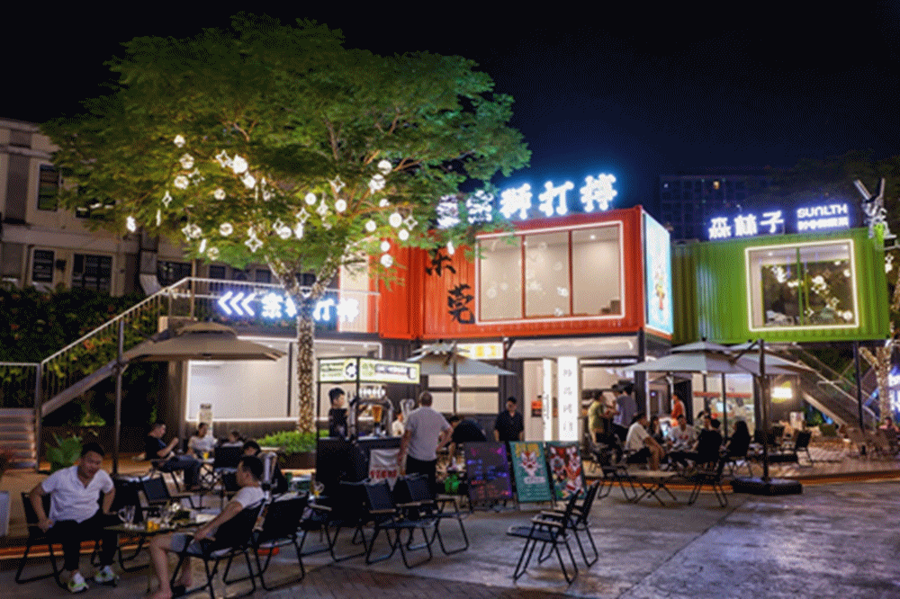 如广东33小镇,便基于夜间经济深挖夜间经营模式,其最新打造的莞青HEA街,透过Z世代喜爱的赛博朋克主题风格,连同一众餐饮、酒吧等品牌实现夜场延时经营,有效为商户创造更多收益。这一经营模式,亦运用至三味夜肆身上。
