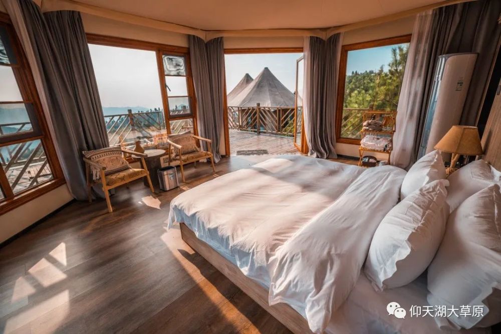 风格多样的独栋树屋,卧房观野趣,露台看日暮,精致下午茶...可将山野与草原美景尽收眼底,避世野奢一回,亲近自然的沉浸式住宿体验,只在仰天湖大草原云奢树屋酒店。