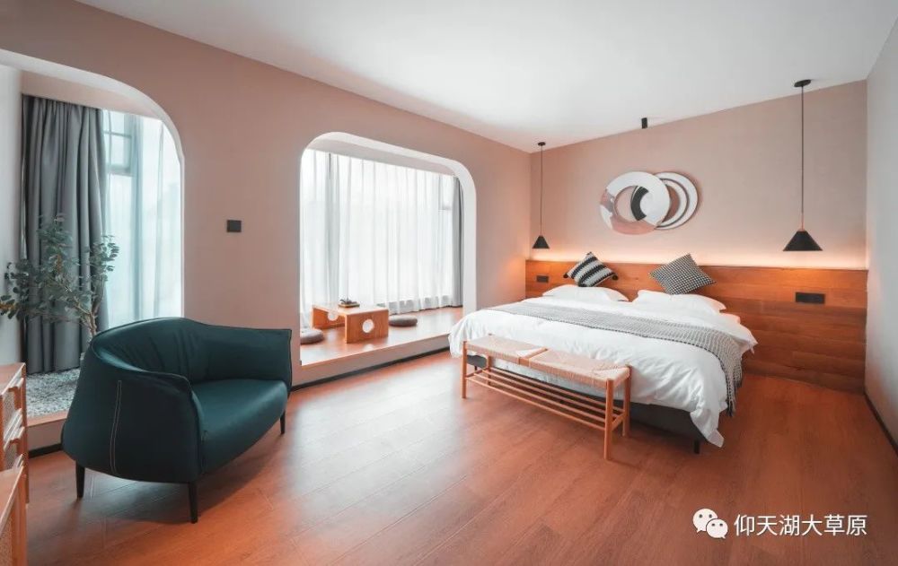 云宿民宿打造艺术复古风,距离仰天湖大草原核心景区900米,是距离仰天湖大草原景区距离最近的民宿综合体之一,有约1200平方米的大型户外休闲草坪,配备垂直电梯,每层楼、每间客房都展现出不同居室风格,多种房型可以选择,东面观景房东面观景房配备宽大露台,是赏日出、云海、星空的绝佳点。