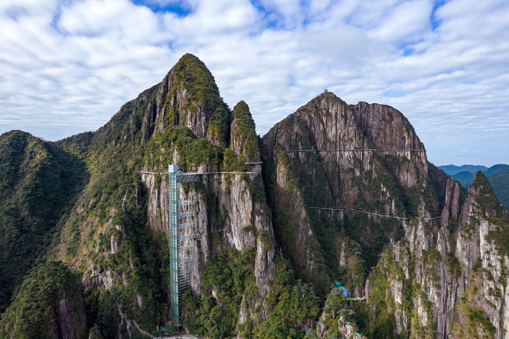 在莽山景区,为了让老人、儿童、残障人士能跟普通人一样登顶莽山,在莽山五指峰建设观光索道、悬空栈道、垂直电梯等,打造出了全国首个全程无障碍游的山岳型景区,让大湾区游客叹为观止。