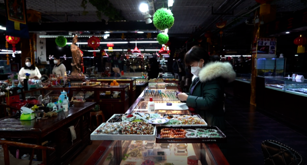 回王府景区“王府玉城”商户郭丽说:“我们已经在这经营十年了,生意蛮好的,哈密产各种的玉石、玛瑙、蛋白石、泥石,这些都是新疆的特产。我们对旅游业也非常有信心,对玉石行业更加有信心。我们的生意会越来越好。”