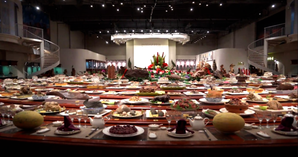 奇石文化博物馆内参观“天下第一宴”的游客络绎不绝。(视频截图)