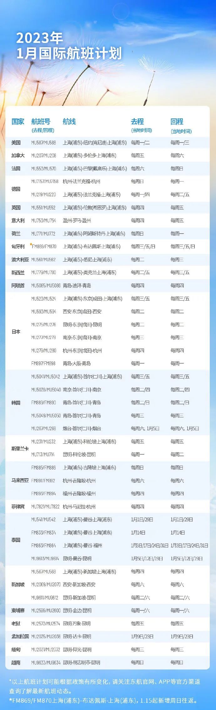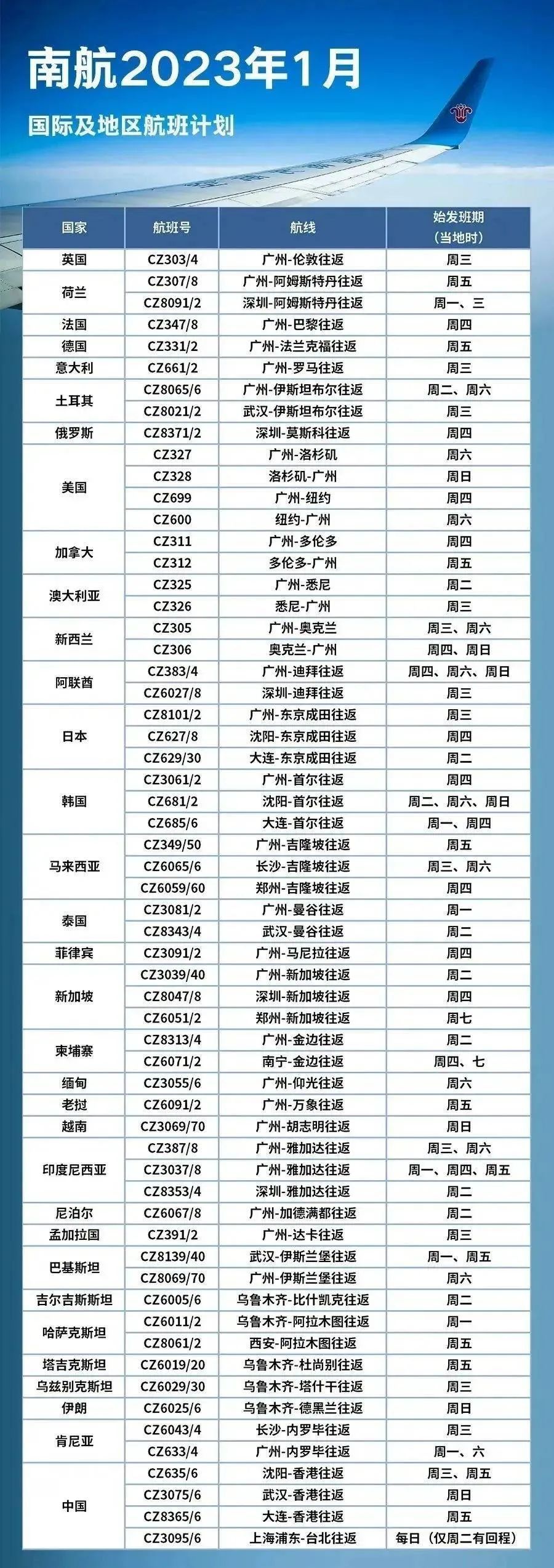 春节出境旅游的小伙伴看过来!必收藏的1月国际航班计划